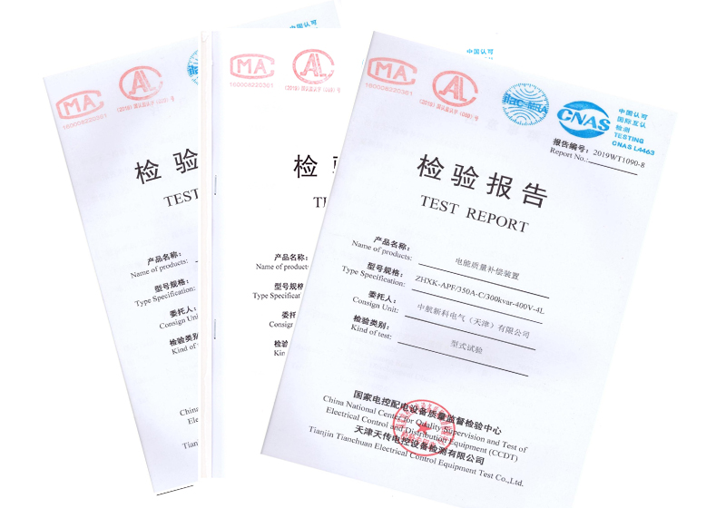 取得電容器、電抗器、控制器的型式試驗報告;取得配電箱、動力柜、配電柜的CCC證書;