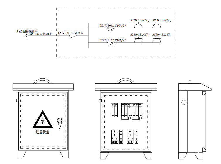 LDX系列建筑工地臨時用電配電箱(二級開關箱),是指在建筑施工現場或戶外臨時用電場合中使用的臨時配電設備,主要用于0.4KV建筑用臨時終端用電系統,由具有明顯可見分斷點,能同時切斷電源所有極的隔離開關、塑殼斷路器、漏電斷路器等主元件及結構殼體、導線、PE接地排、N零線排、計量元件等組成。用途主要是為了滿足建筑工地在施工過程中對電力的臨時需求,其主要作用是對施工過程中用電設備提供電源,并確保這些電力供應的安全、可靠和高效。廣泛應用于石油、化工、市政、路橋、公建、住宅等建設工程臨時用電系統中。