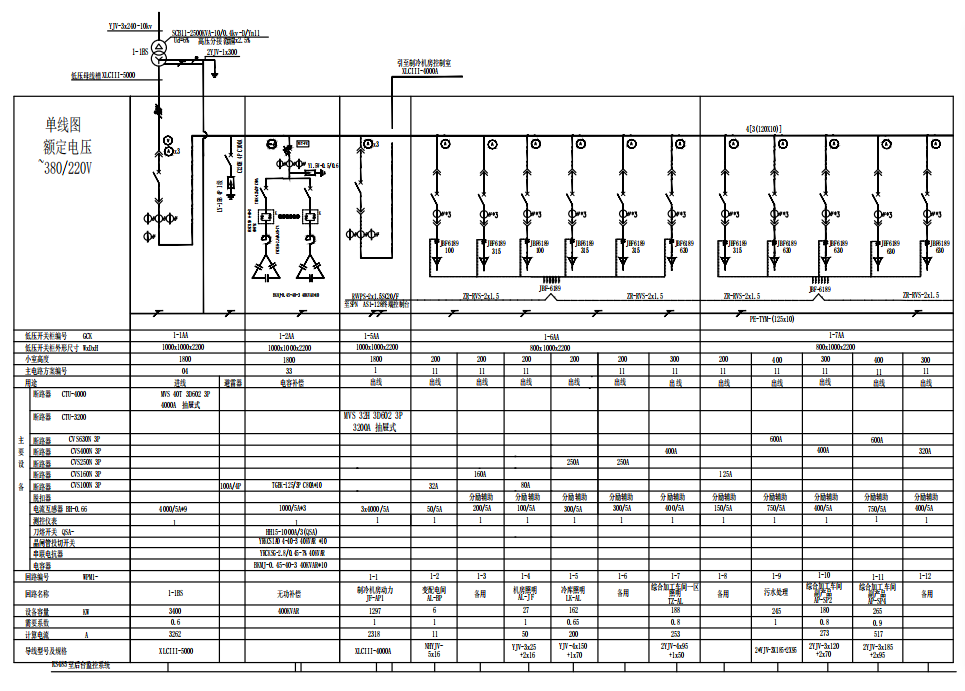 水平主母線的額定電流(InA) |