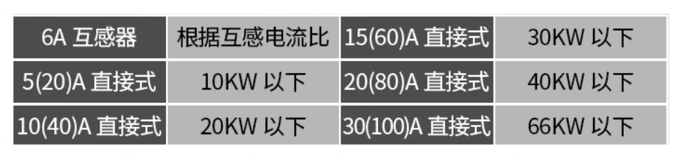 直接接入式:3×5(80)A CT接入式:3×1.5(6)A |