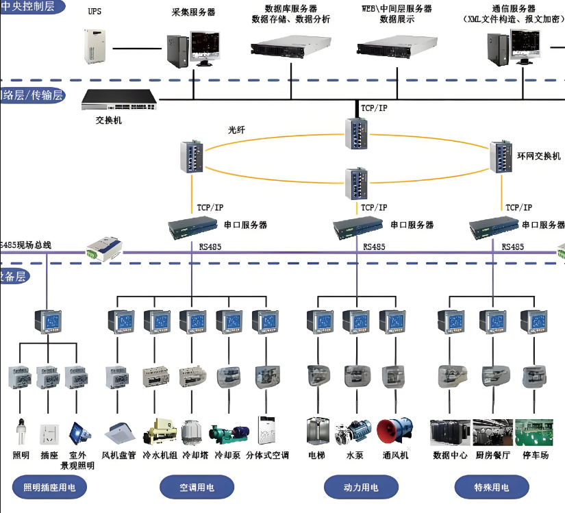 能耗管理系統(tǒng)是一種基于物聯(lián)網(wǎng)和大數(shù)據(jù)技術(shù)的創(chuàng)新管理系統(tǒng),旨在通過實(shí)時(shí)監(jiān)測和智能分析,實(shí)現(xiàn)對(duì)建筑物能耗的精細(xì)化管理和優(yōu)化。下面將介紹智慧能耗管理系統(tǒng)的系統(tǒng)架構(gòu)組成。