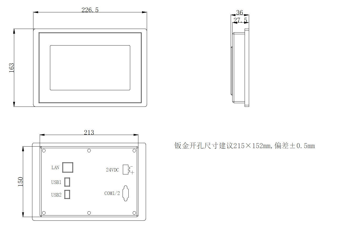 電阻觸摸屏(可選配:電容觸摸屏) |