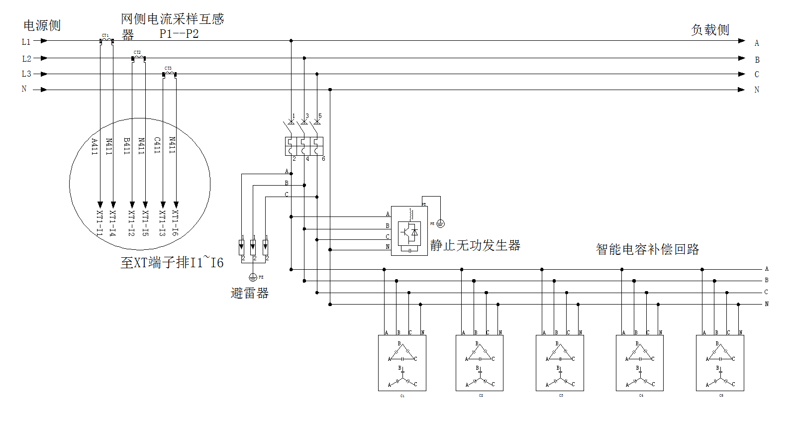 線路調節(jié):能夠解決系統(tǒng)三相負荷不平衡的問題,不僅不產(chǎn)生諧波,而且能在補償無功功率的同時動態(tài)的補償諧波;