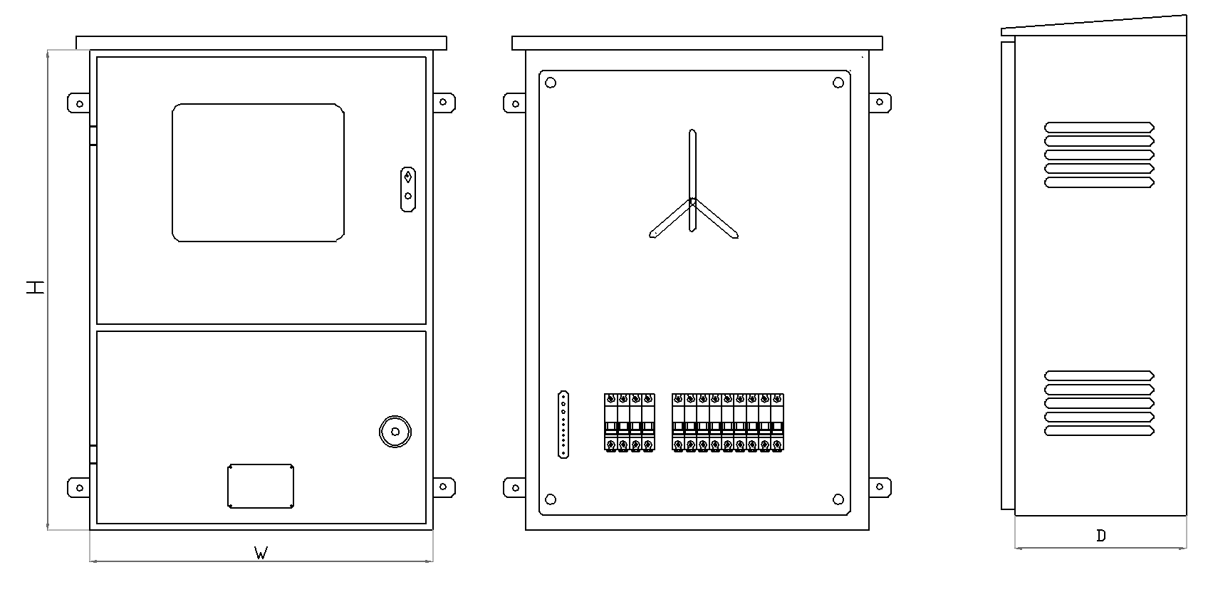 結構布局:采用集成化設計理念,提供并網保護功能及預留電表安裝位置。箱門需要專業鑰匙開啟,實現專業管理,也能防止竊電行為。