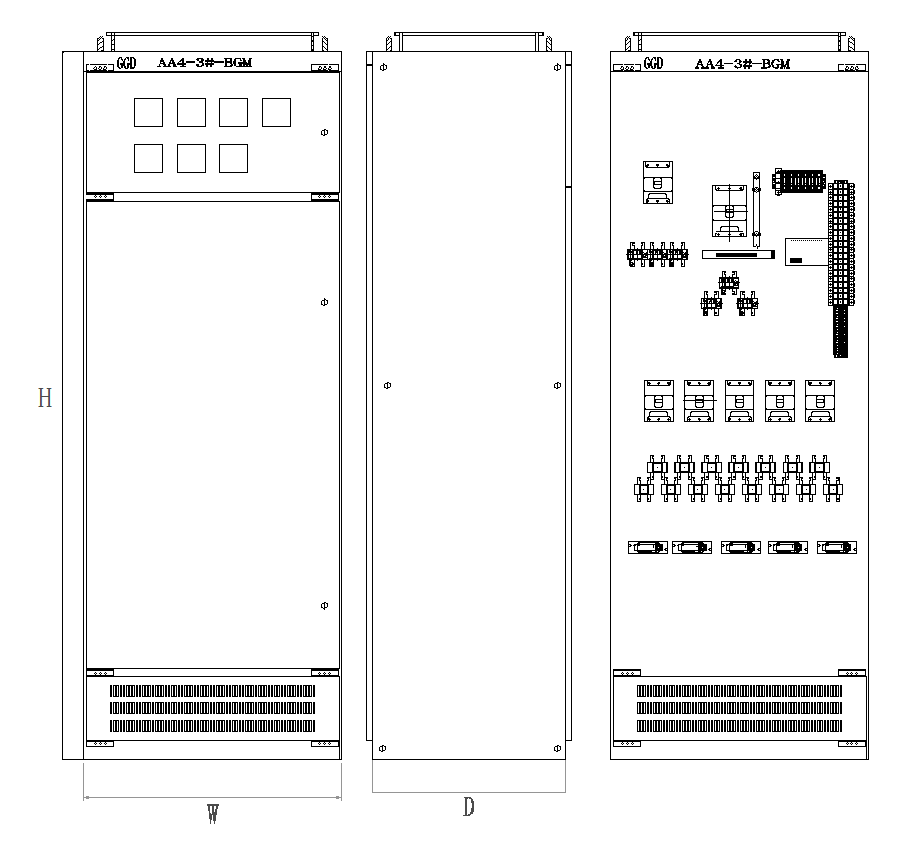 GGD系列低壓配電柜是根據(jù)能源部主管上級,廣大電力用戶及設計部門的要求,本著安全、經(jīng)濟、合理、可靠的原則設計的新型低壓配電柜。產(chǎn)品具有分段能力高,動熱穩(wěn)定性好、電氣方案靈活,組合方便、系列型、實用性強、結構新穎、防護等級高等特點。可作為低壓成套開關設備的更新?lián)Q代產(chǎn)品使用。產(chǎn)品廣泛適用于發(fā)電廠、變電站、廠礦企業(yè)等電力用戶的交流50Hz,額定工作電壓380V,額定工作電流至3150A的配電系統(tǒng),作為動力,照明及配電設備的電能轉換、分配與控制之用。
