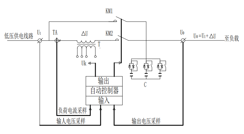 旁路功能;采用晶閘管過零切換,配合繼電器旁路,換檔快, 損耗低,壽命長,輸出無沖擊,調壓、旁路可手動切換;