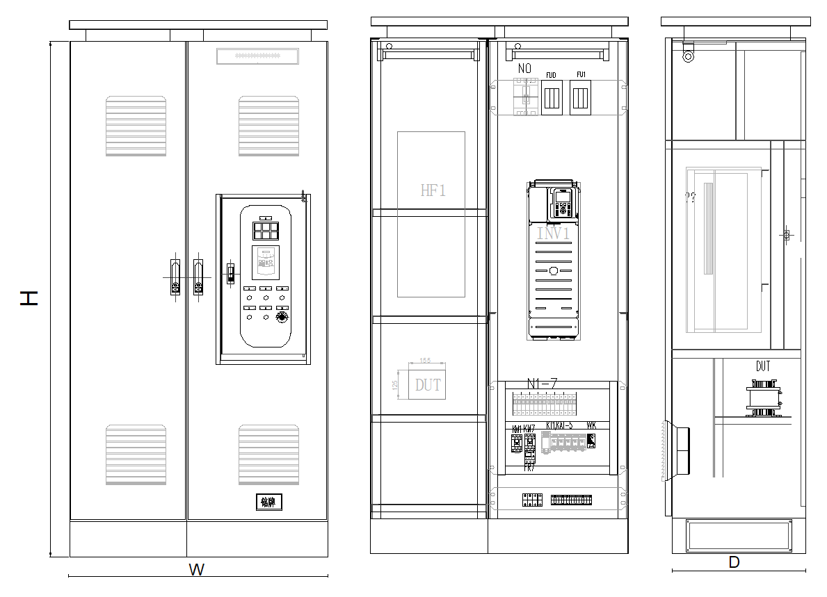 ZHXK-VGL變頻器控制柜可廣泛應用于冶金、化工、石油、供水、礦山、建材、電機行業等泵類、風機、空氣壓縮機、軋鋼機、注塑機、皮帶運輸機等各種中壓電機設備。變頻柜采用封閉柜式結構,防護等級一般為IP20,IP21,IP30等,采用型材骨架,表面涂敷噴塑,且容易并柜安裝,上端可配置母線,變頻器面板外引至柜體外表可直接操作,根據需要可設置就地和遠程控制或PC/PLC通訊控制,具有很直觀的各種顯示功能。變頻器是變頻柜的專用配套產品,其變頻調速功能及主要技術參數取決于內設變頻器的規格型號和外圍的配置狀況。變頻器柜根據用途的不同和功能的各異其差別也很大,一般根據工礦要求定制。比較定型的有:恒壓供水變頻柜(1控1,1控2,1控3等),自動扶梯變頻控制柜,中央空調循環水泵變頻柜, 風機變頻節能柜。