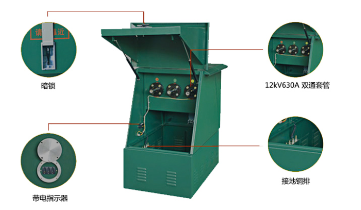 安全防護:全絕緣、全密封結構,無需絕緣距離,可安裝電纜型故障指示器,便于迅速查找電纜故障,可靠保證人身安全;